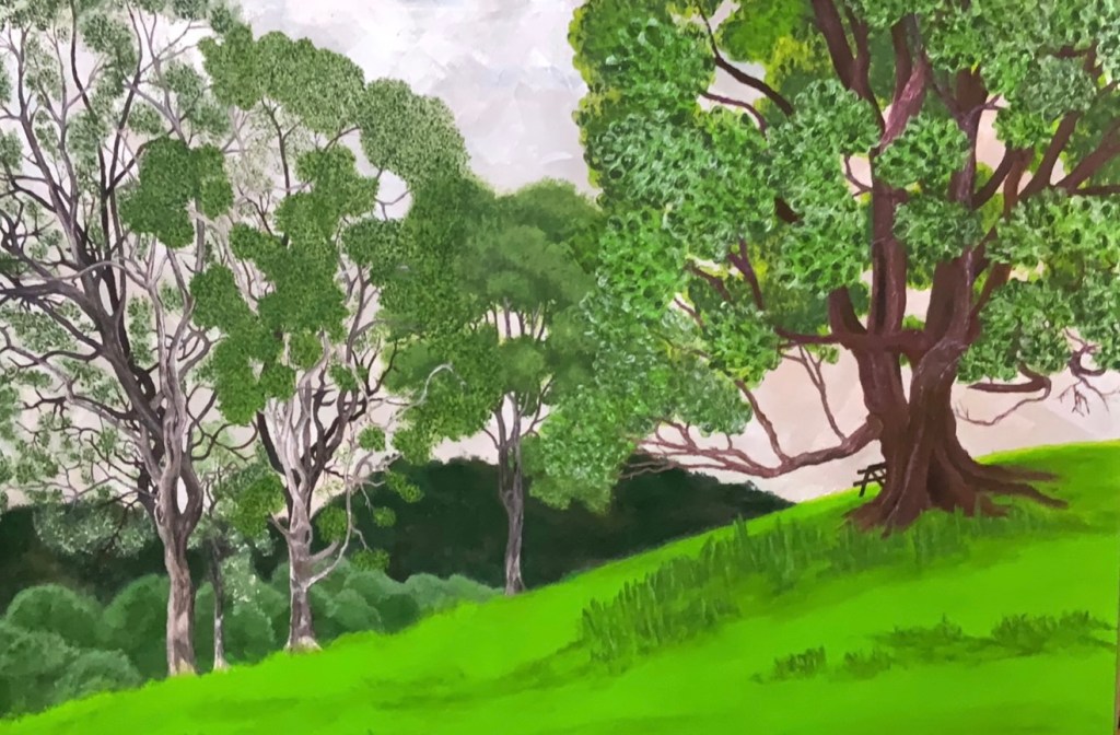 This painting comes from another Murwillumbah farm inspired picture; that expresses the heart chakra in full colour of the many greens that the murwillumbah nature region offers.